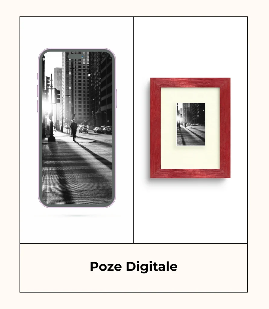 Încarcă pozele digitale în site și le printăm, iar pentru arta fizică trimitem un curier să o ridice